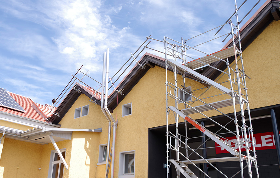 Wir bauen Gerüste für Objekte jeder Grösse. Die Gloor AG verfügt über 40’000 m2 solides Stahlrohrgerüst